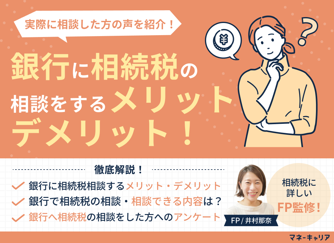 本記事では、銀行でできる相続税相談の内容、メリットやデメリットを紹介します。実際に利用した方の体験談も紹介しますので、ぜひ参考になさってください。