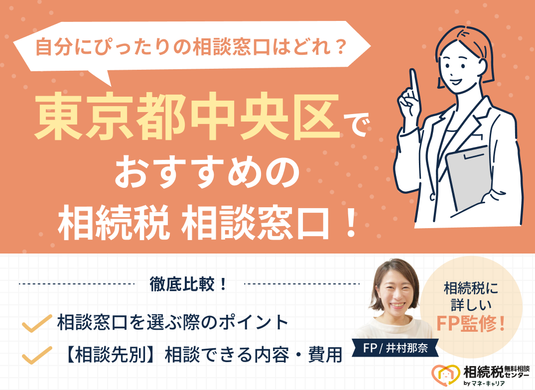 「東京都中央区でおすすめの相続税相談窓口はどこ?」 とお悩みの方に、東京都中央区でおすすめの相続税相談窓口5社、失敗しない相談窓口の選び方を解説します。