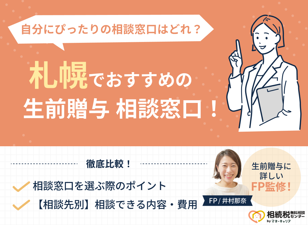 「札幌(北海道)でおすすめの生前贈与相談窓口はどこ?」とお悩みの方に、札幌(北海道)でおすすめの生前贈与相談窓口5社と、失敗しない相談窓口の選び方を解説します。