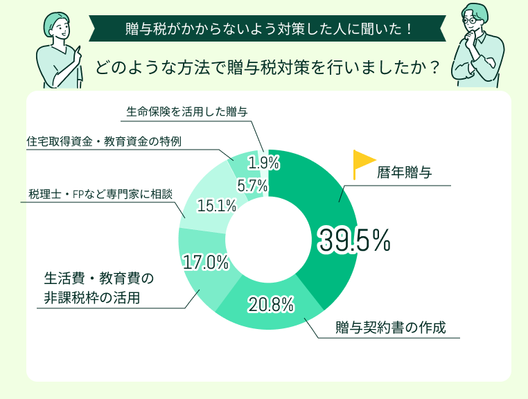 贈与税の対策は制度ごとに条件が細かく、実際に使ってみないと分からない点も多いものです。今回は、贈与税がかからない方法を実際に活用した人へ独自アンケートを行い調査しました。