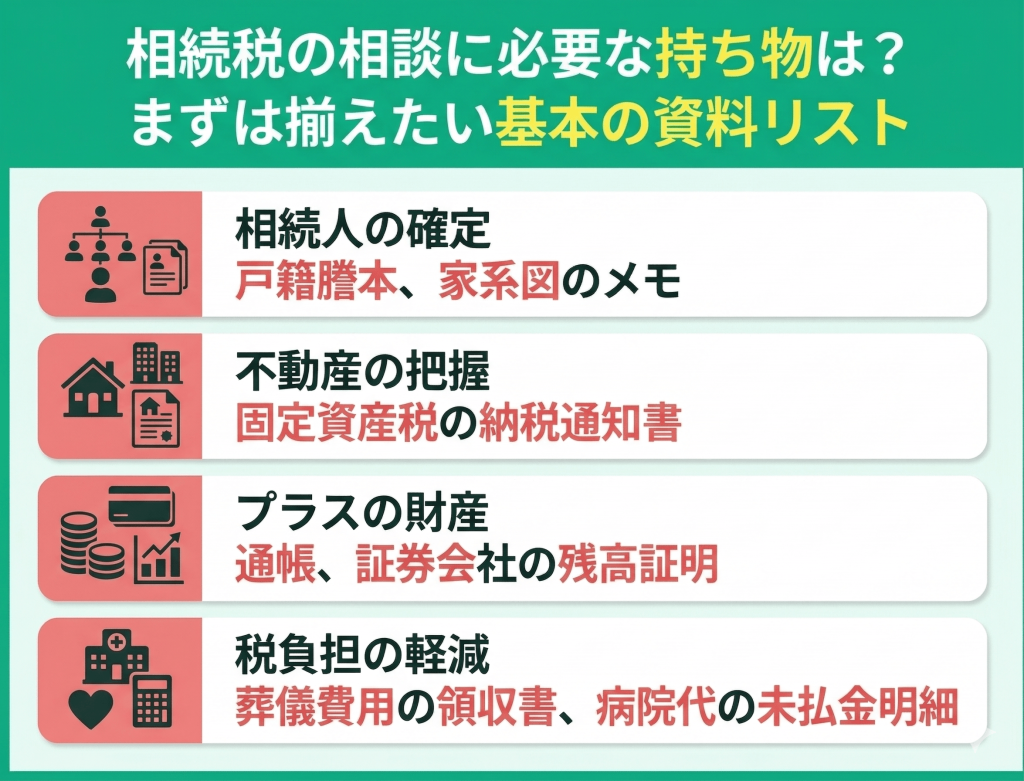 • 相続発生後、相続税の相談に何を持っていけばいいかわからない