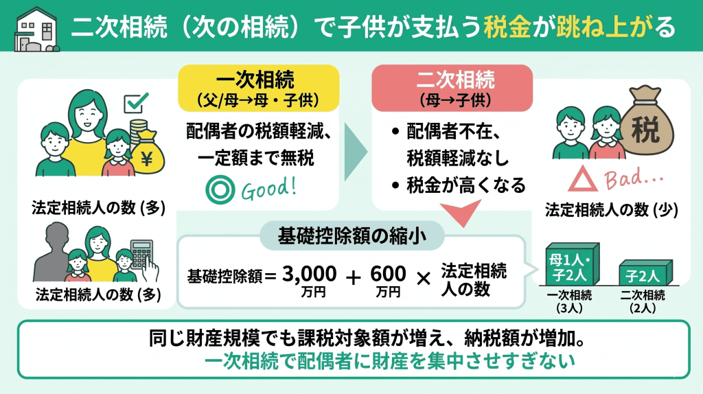 二次相続(次の相続)で子供が支払う税金が跳ね上がる