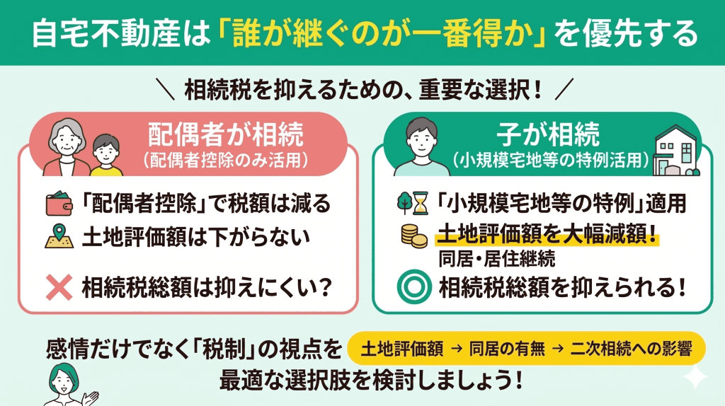 相続では「配偶者に渡すのが安心」と考えがちですが、不動産に関しては税制上の有利不利で判断する視点が欠かせません。