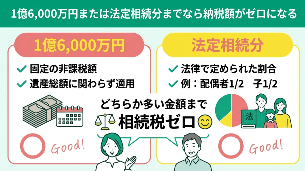 1億6,000万円または法定相続分までなら納税額がゼロになる