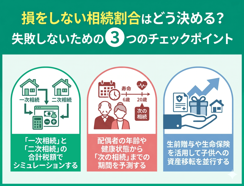 目先の税金だけでなく、二次相続まで考慮したバランスの良い遺産分割が大切になります。