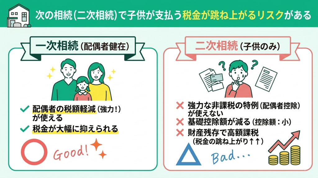 次の相続(二次相続)で子供が支払う税金が跳ね上がるリスクがある