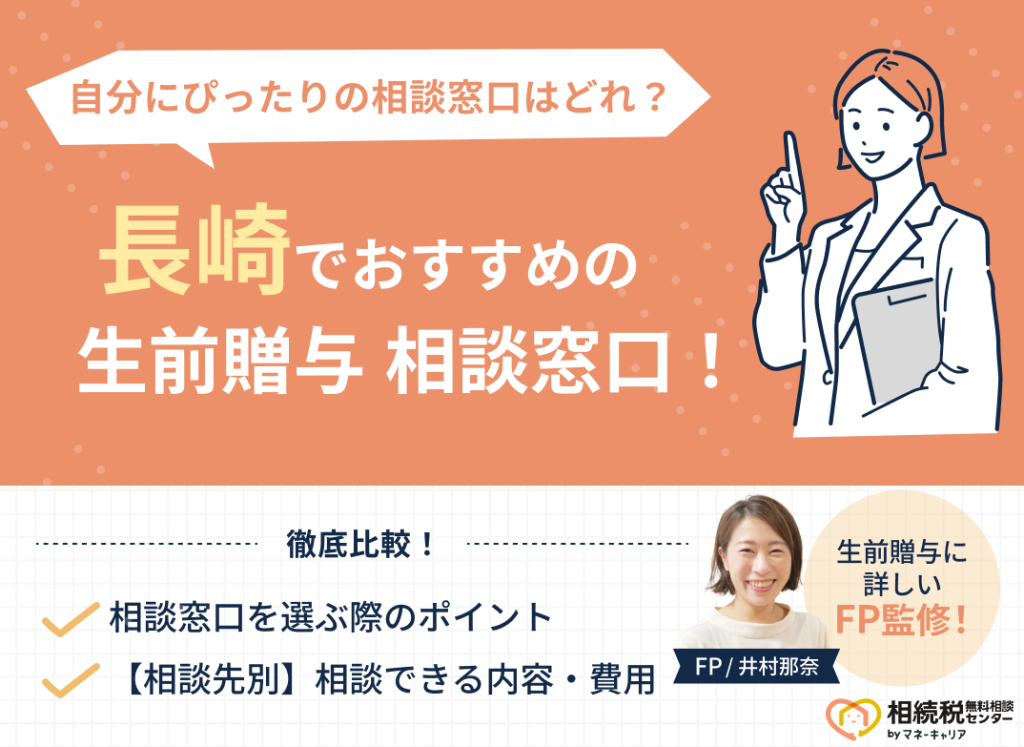 「長崎でおすすめの相続税相談窓口はどこ?」 とお悩みの方に、長崎でおすすめの相続税相談窓口5社と、失敗しない相談窓口の選び方を解説します。 長崎で相続税の相談先を探す時によくある失敗例として、「担当FPが経験不足だった」「おすすめされた方法が... -